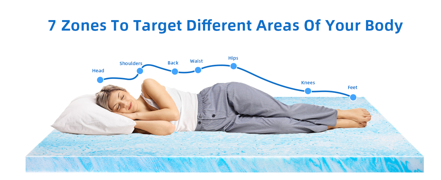 🍉Breathable & Ventilated Features -- Our gel twin xl memory foam mattress topper is infused with capturing gel to regulate temperature for improved comfort & support. Additionally, our gel mattress topper twin xl adopts a ventilated design that enhances breathable property that allows heat and humidity normally trapped under covers to be cycled out of the mattress, preventing them from penetrating the mattress for a more comfortable sleep climate.