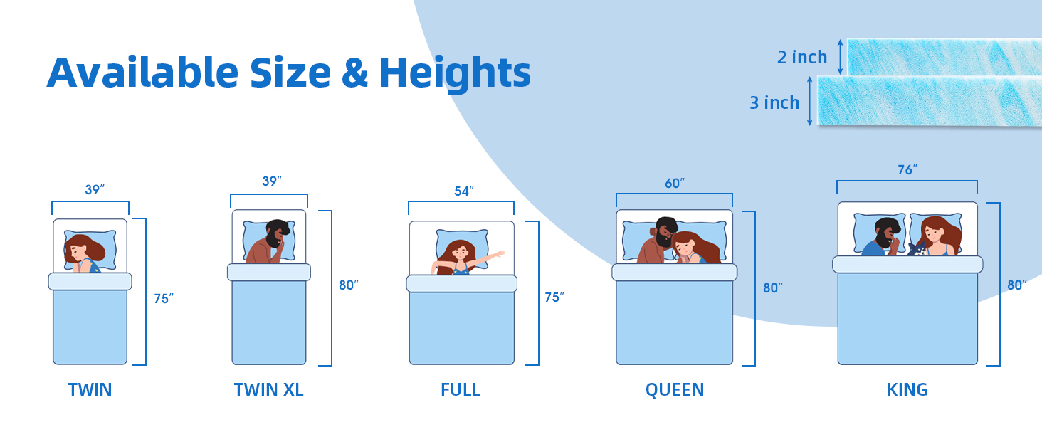 🍉Easy Setup -- Boasting remarkable elasticity and effective resistance to deformation, our twin xl mattress topper memory foam is easy to install. The gel foam mattress topper is compressed for convenient transportation. Upon receiving your gel mattress topper, simply unbox, unroll, and allow it to sit in a well-ventilated space for 48-72 hours to achieve full expansion.